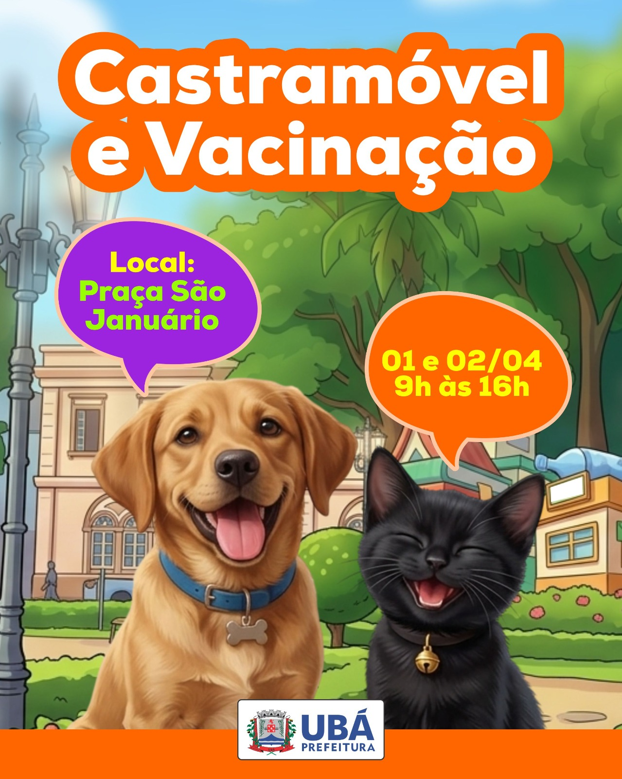 A Prefeitura de Ubá realiza, nos dias 1º e 2 de abril, um grande mutirão de castração e vacinação de cães e gatos, na Praça São Januário, das 9h às 16h. A iniciativa, coordenada pela Secretaria Municipal de Agricultura e Ambiente, reforça o compromisso do município com a saúde pública, o bem-estar animal e o controle populacional.
