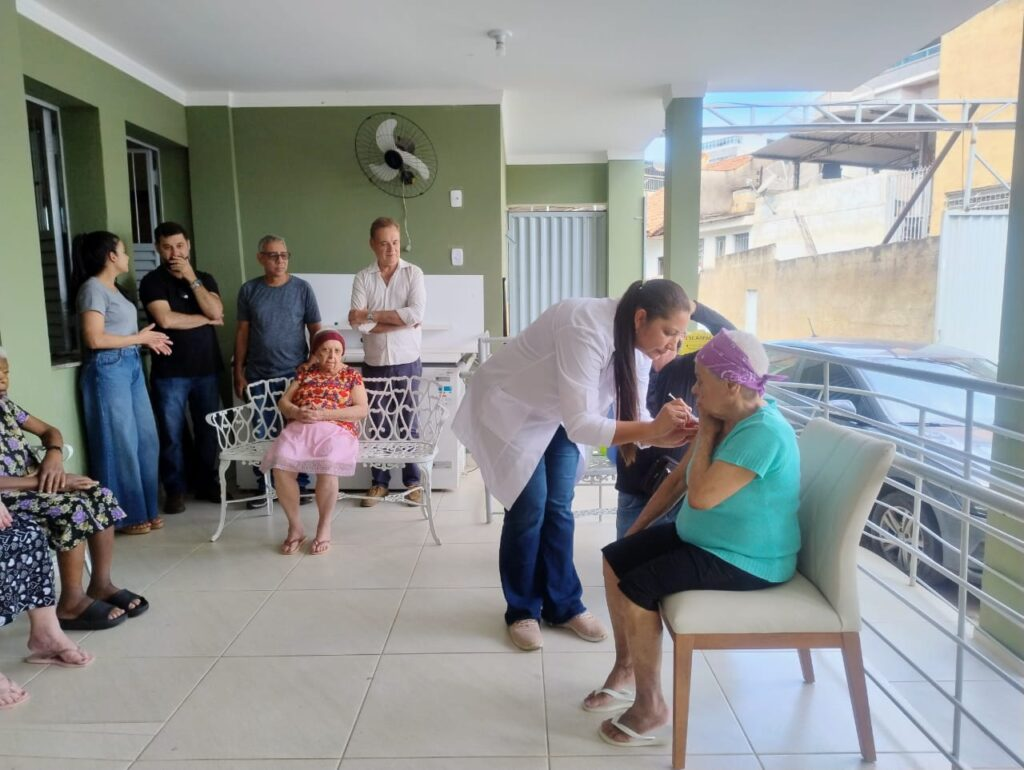 A vacinação foi realizada com apoio do vacimóvel, unidade móvel equipada como uma sala de vacina, que se deslocou até a Instituição de Longa Permanência para Idosos (ILPI), garantindo acesso à imunização para um público com maior dificuldade de locomoção.