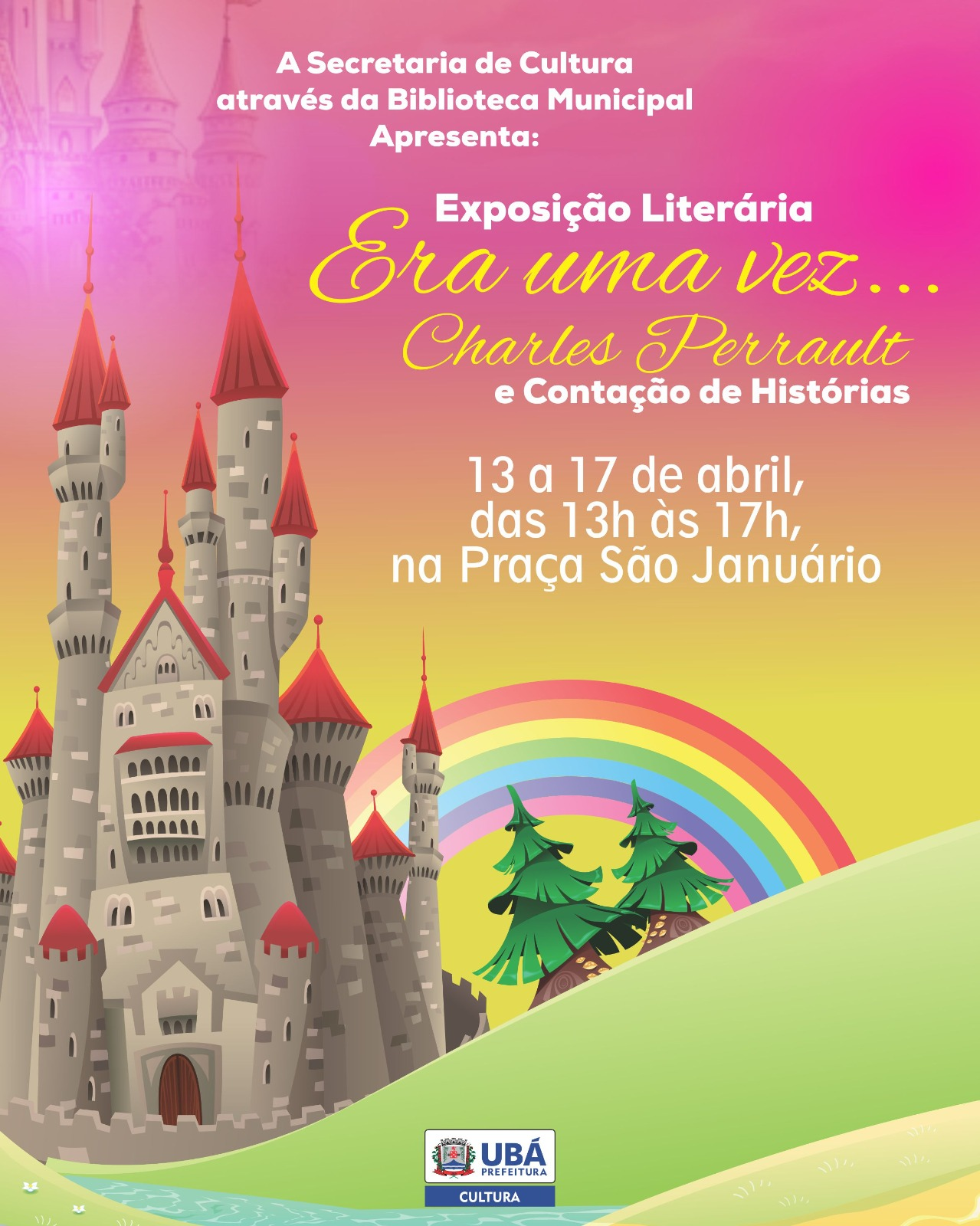 A Prefeitura de Ubá, por meio da Secretaria Municipal de Cultura e da Biblioteca Municipal, realiza entre os dias 13 e 17 de abril, na Praça São Januário, a exposição literária “Era uma vez... Charles Perrault”, acompanhada de atividades de contação de histórias. O evento acontecerá das 13h às 17h e promete encantar públicos de todas as idades.