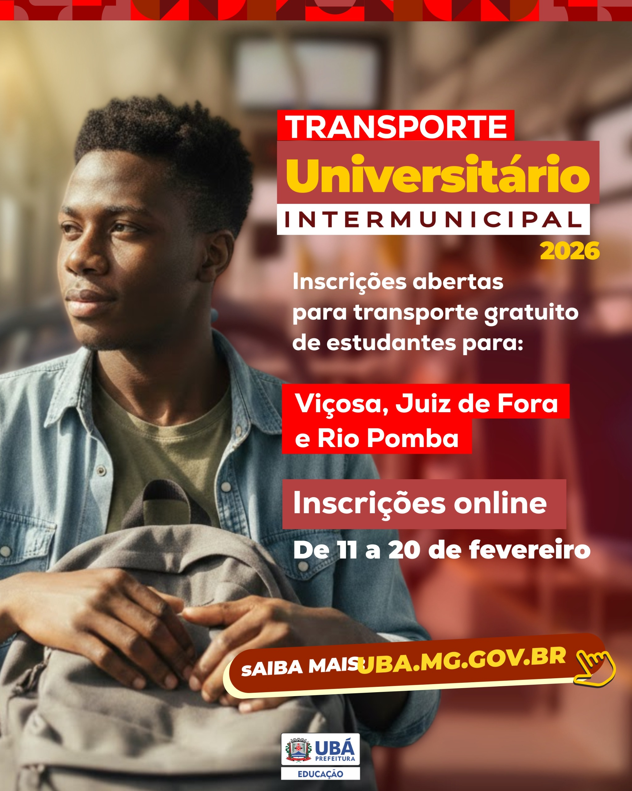 A Prefeitura de Ubá, por meio da Secretaria Municipal de Educação, abriu as inscrições para o cadastramento semestral do Transporte Universitário Intermunicipal referente ao ano letivo de 2026, conforme estabelece o Edital nº 002/2026.