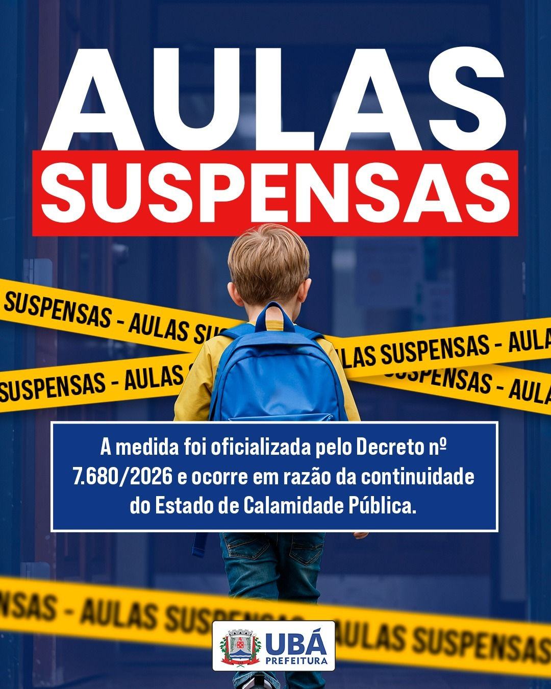A Prefeitura de Ubá, por meio da Secretaria de Educação, prorrogou a suspensão das atividades educacionais presenciais em todo o município até o dia 6 de março de 2026. A medida foi oficializada por meio do Decreto nº 7.680e ocorre em razão da continuidade do Estado de Calamidade Pública.