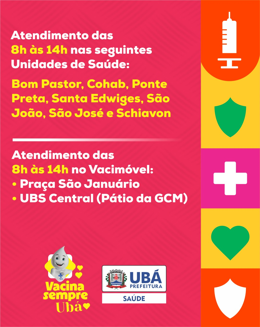 A Prefeitura de Ubá, por meio da Secretaria Municipal de Saúde, deu início na última segunda-feira, 30 de março, à Campanha de Vacinação contra a Gripe. Nesta primeira etapa, o município recebeu 3.000 doses, destinadas aos grupos prioritários definidos pelo Ministério da Saúde. As vacinas já estão disponíveis nas Unidades de Saúde com salas de vacinação ativas.