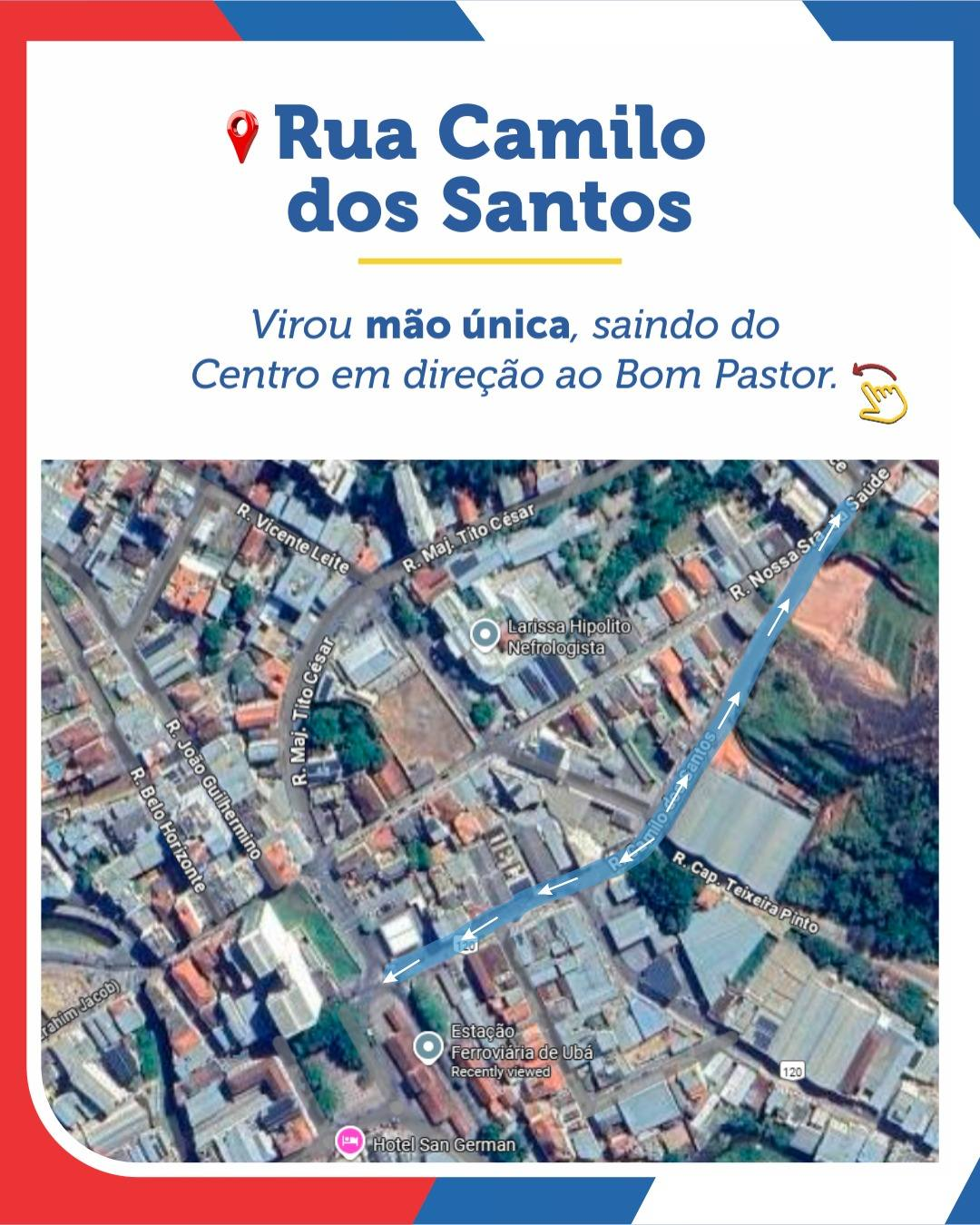 Rua Camilo dos Santos: torna-se mão única, com tráfego do Centro em direção ao Bom Pastor, a partir da interseção com a Rua Inácio Godinho.