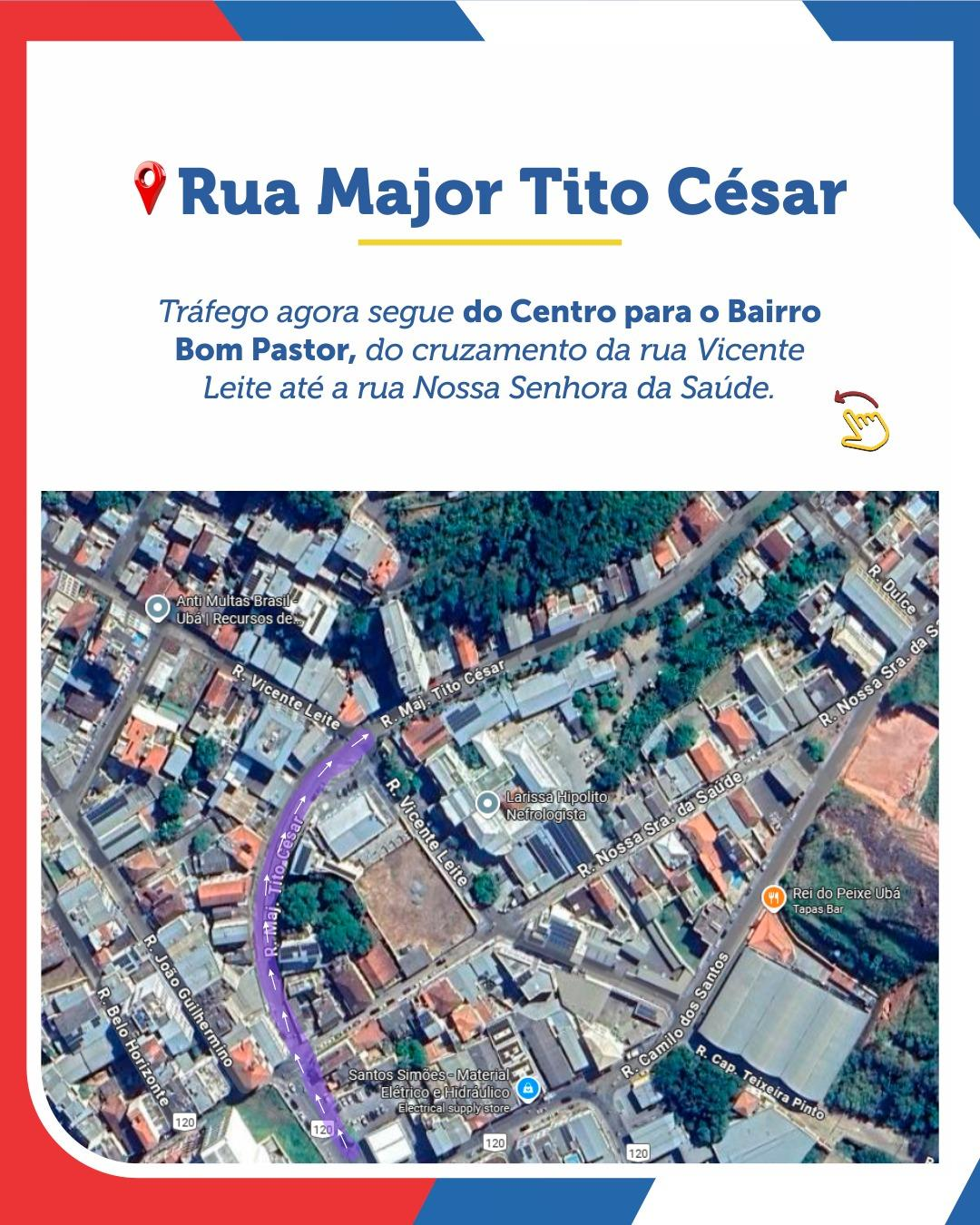 Rua Major Tito César: tráfego passa a seguir do Centro para o Bairro Bom Pastor, até o trecho entre a Rua Vicente Leite e a Rua Nossa Senhora da Saúde.