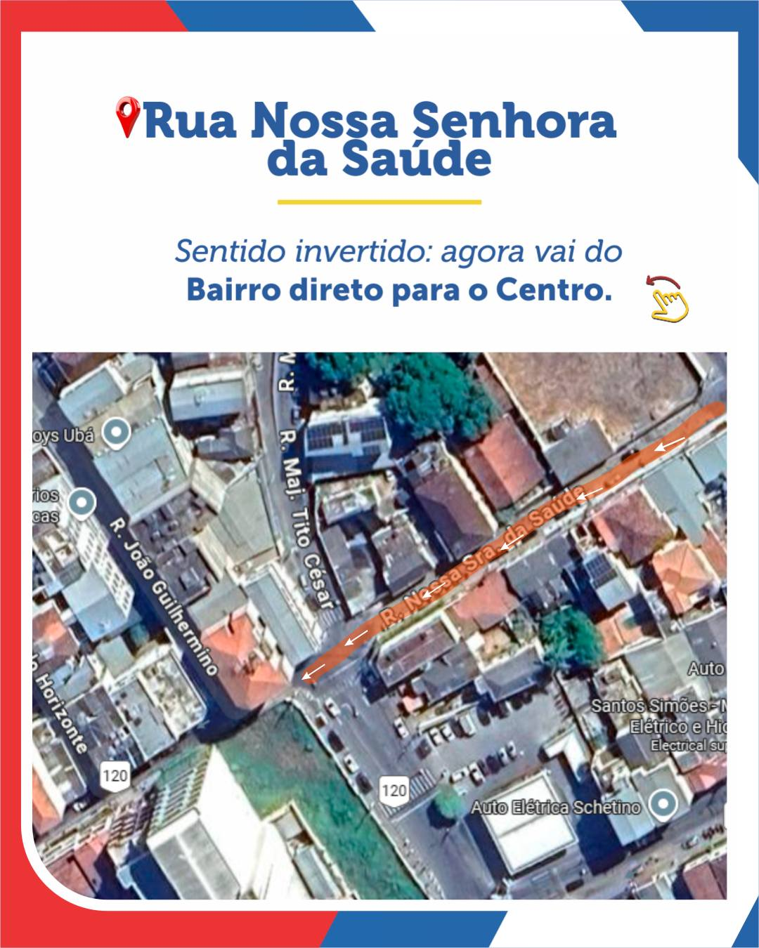 Rua Nossa Senhora da Saúde: tem o sentido invertido, passando a ligar o Bairro ao Centro.
