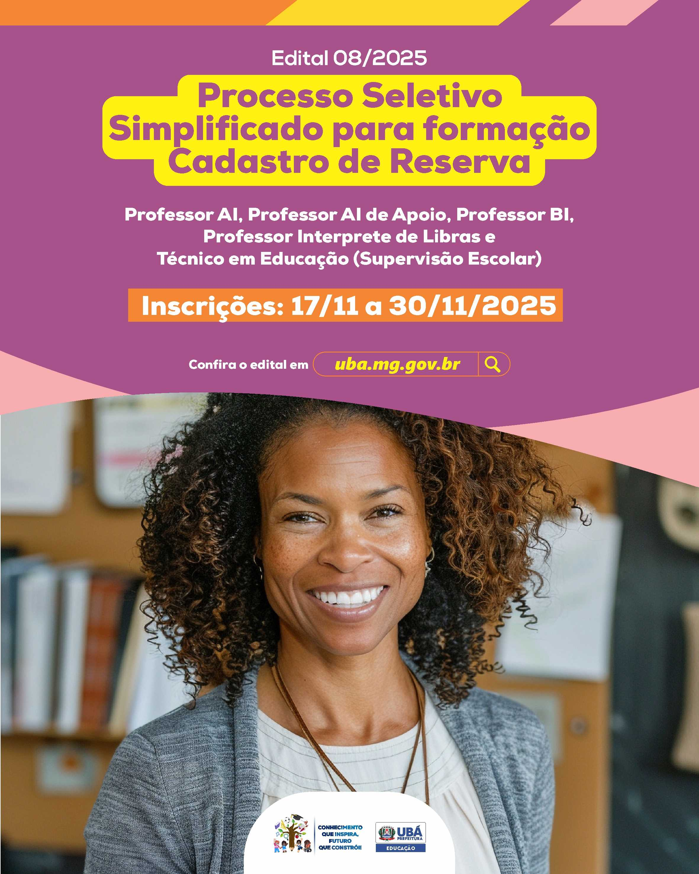 A Prefeitura de Ubá, por meio da Fundação Mariana Resende Costa (FUMARC), anuncia a abertura do Processo Seletivo Simplificado nº 08/2025, com o objetivo de formar cadastro de reserva de profissionais com ensino médio e superior em licenciatura plena para atuação na rede municipal de ensino.